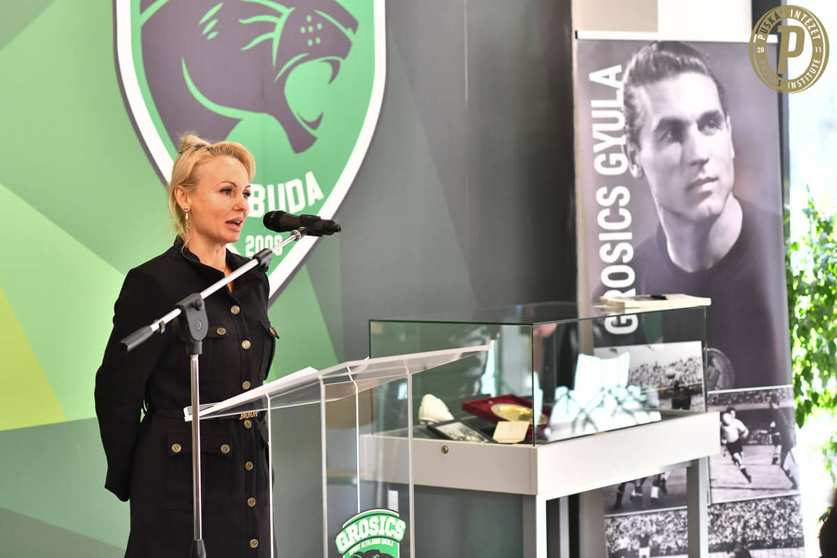 „Számomra valóságos spirituális élmény felidézni a magyar labdarúgás legszebb időszakát – kezdte beszédét a kapus lánya, Grosics Edina. – Amit az Aranycsapat tett, az kétségkívül a nemzet szolgálata volt. Ez a csapat hihetetlen körülmények között tudott hihetetlen örömet okozni, méghozzá nem csupán a szurkolók számára, hanem az egész nemzet számára határon belül és kívül. Úgy hiszem, édesapám példakép lehet emberségből, hazafiságból, sportszeretetből. Büszkeség számomra, hogy ő is az Aranycsapat tagja lehetett. Emlékei, amelyek most itt láthatók, egykor az életem részei voltak, együtt nőttem fel velük, segítettek megérteni, mi is az Aranycsapat. Édesapám úgy gondolta, legjobb helyen a Puskás Intézetnél lesznek, így szolgálva a sportot és a nemzetet. Nehéz volt elengednem őket, hiszen velük együtt búcsút kellett mondanom az életem egy szeletének, ugyanakkor tudom, hogy így töltik be leginkább a küldetésüket.”