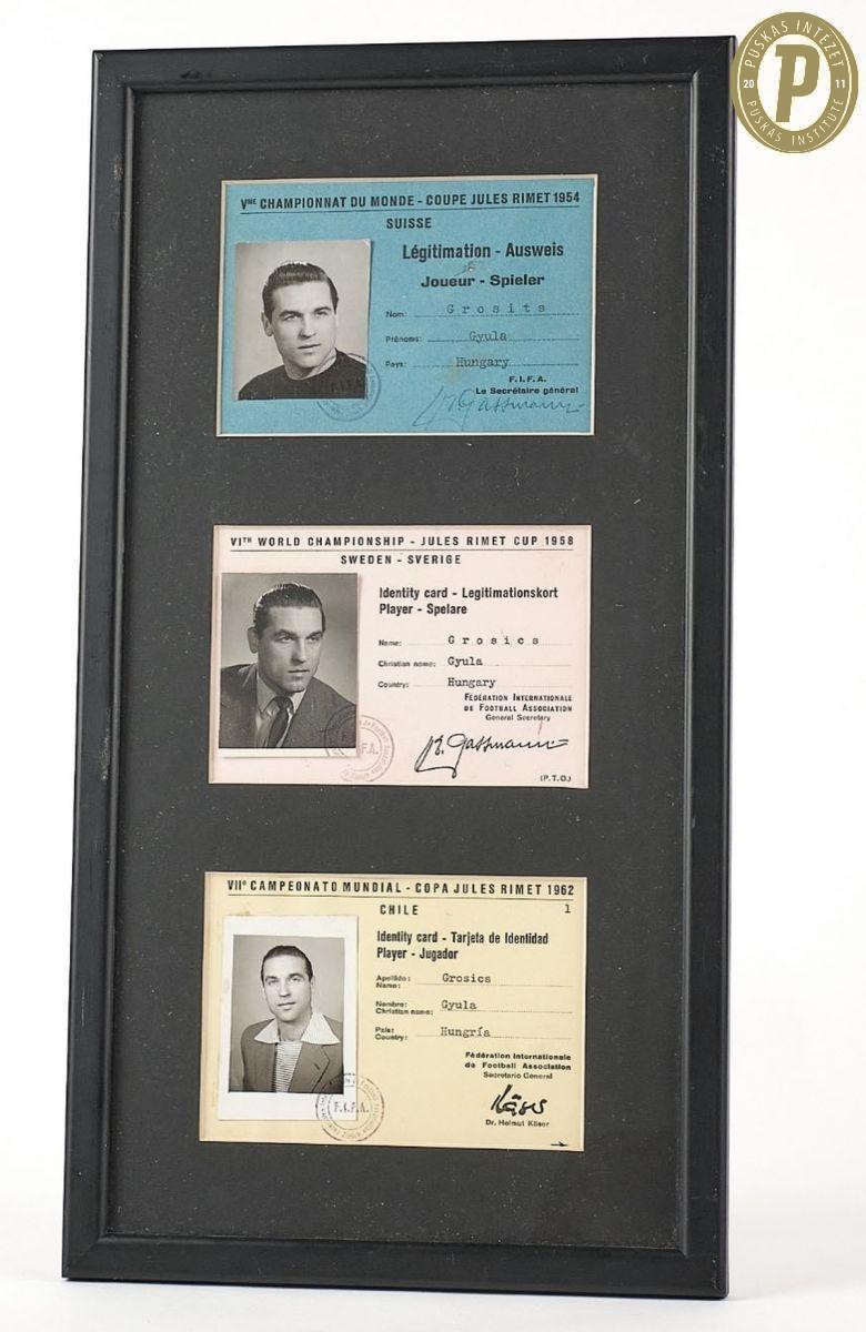 Grosics Gyula bekeretezett vb-akkreditációs igazolványai (1954, 1958, 1962). (Fotó: Puskás Intézet/Grosics-hagyaték)