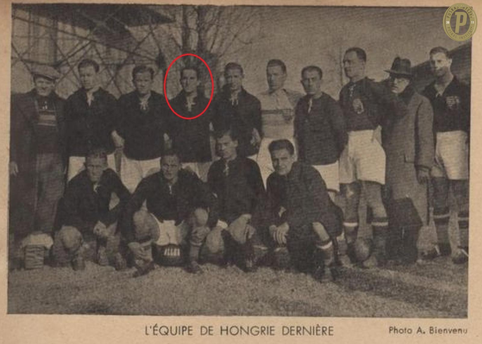 Az 1938-as világbajnoki ezüstérmes magyar labdarúgó-válogatott tagjai (Lázár Gyula, felső sorban balról a negyedik). (Fotó: Puskás Intézet)