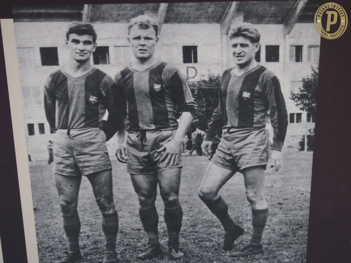 Immáron a Barcelona mezében a három világklasszis magyar futballista: Kocsis Sándor, Kubala László és Czibor Zoltán (Fotó: Puskás Intézet)
