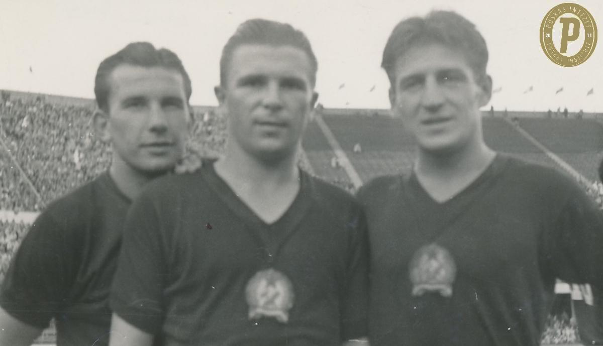 Zakariás József, Puskás Ferenc és Czibor Zoltán a magyar labdarúgó-válogatott mezében. (Fotó: Puskás Intézet)