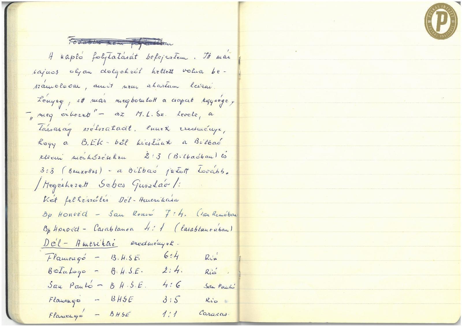 Bányai Nándor naplójának utolsó oldala. (Fotó:Puskás Intézet)