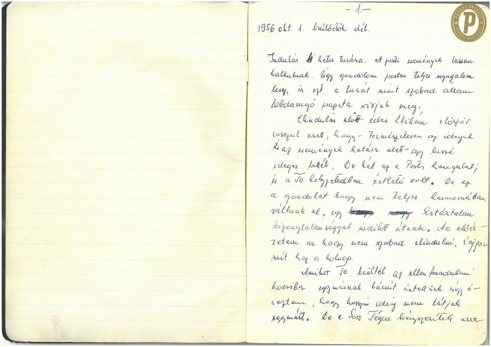 Bányai Nándor naplójának első oldala. (Fotó: Puskás Intézet)