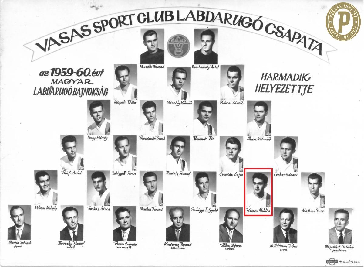 A Vasas SC bajnoki bronzérmes csapata, 1959–1960 (Fotó: Puskás Intézet)