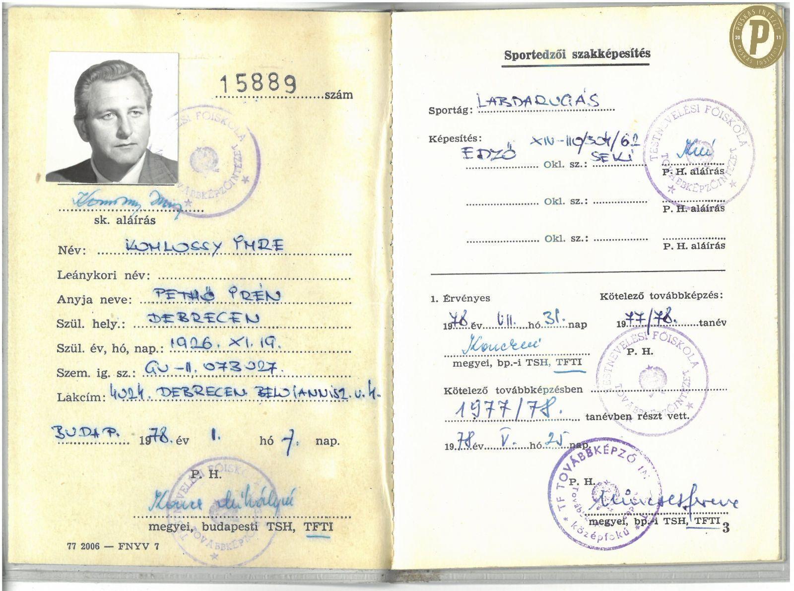 Komlóssy Imre edzői igazolványa. (Fotó: Puskás Intézet)