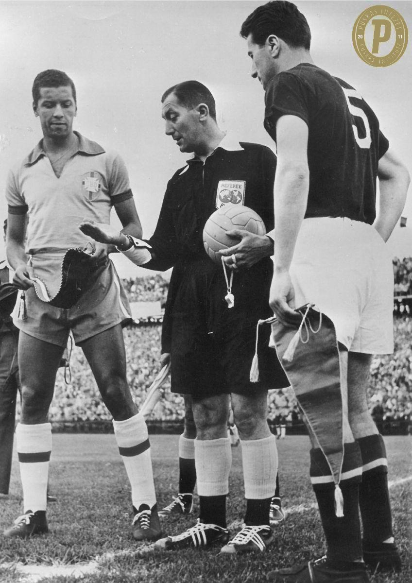 Bozsik József csapatkapitányként az 1954-es világbajnokság negyeddöntőjében, Brazília ellen. (Fotó:Puskás Intézet/Bozsik-hagyaték)