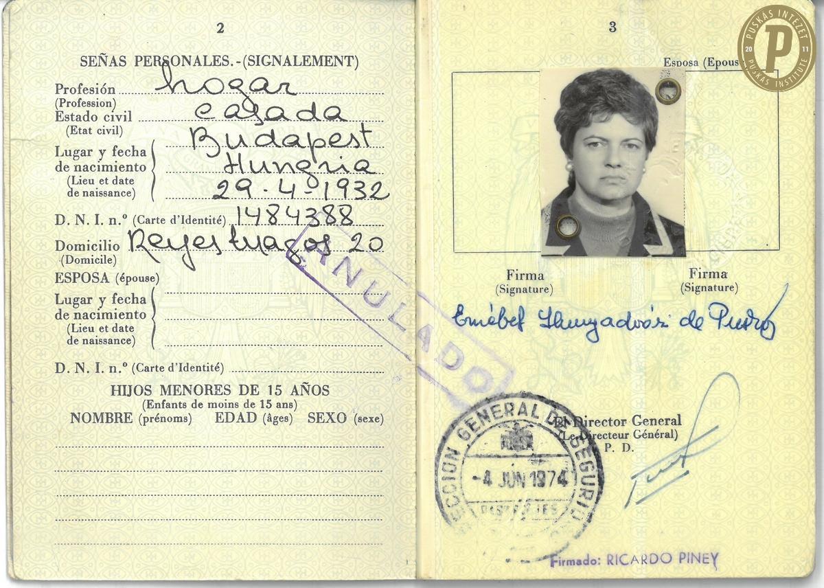 Puskás Ferencné spanyolországi útlevele. (Fotó: Puskás Intézet)