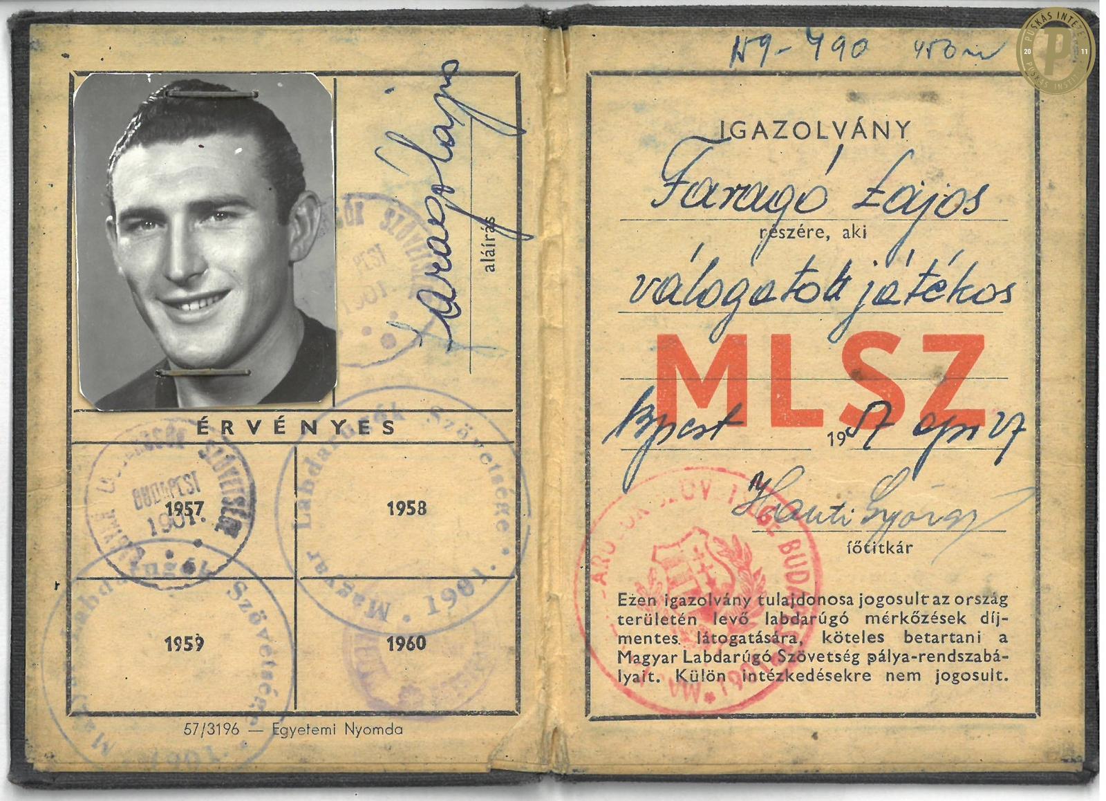 Faragó Lajos játékosigazolványa. (Fotó: Puskás Intézet)