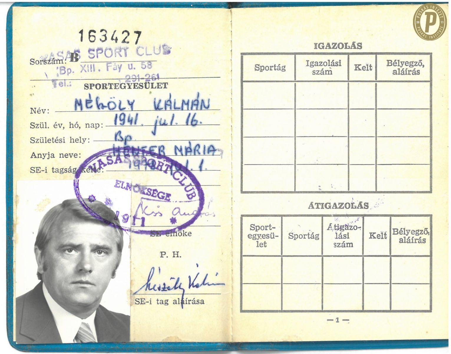 Mészöly Kálmán Vasas tagsági igazolványa. (Fotó: Puskás Intézet)