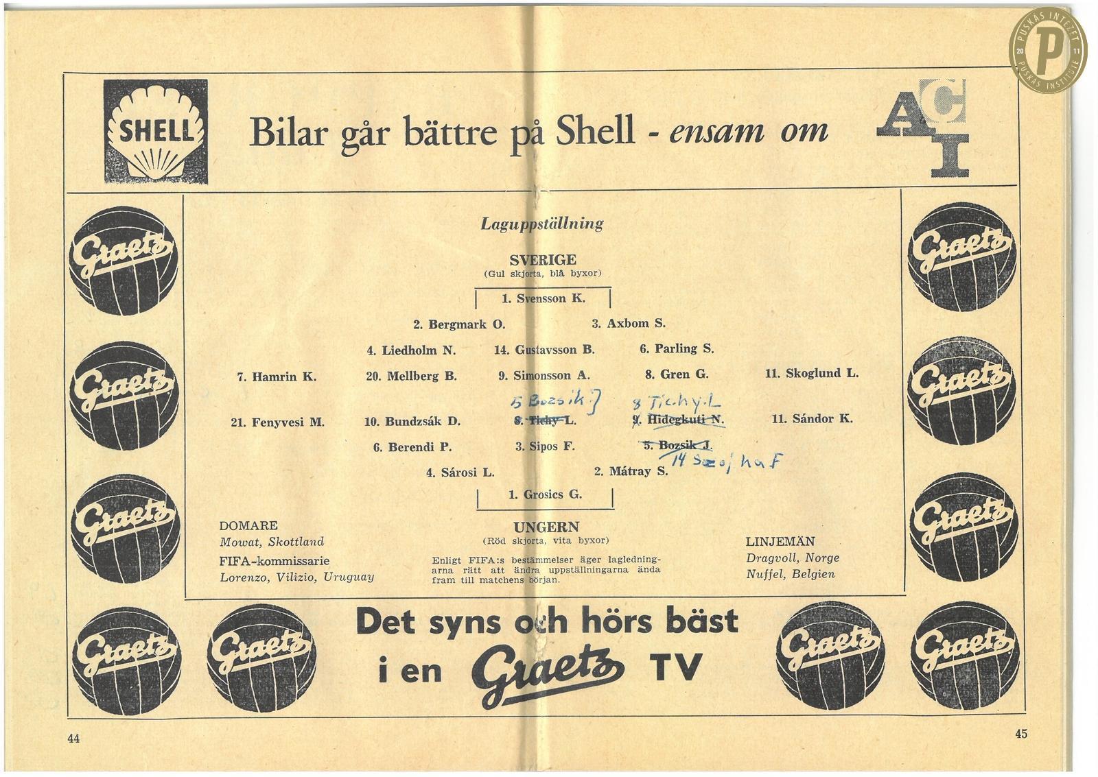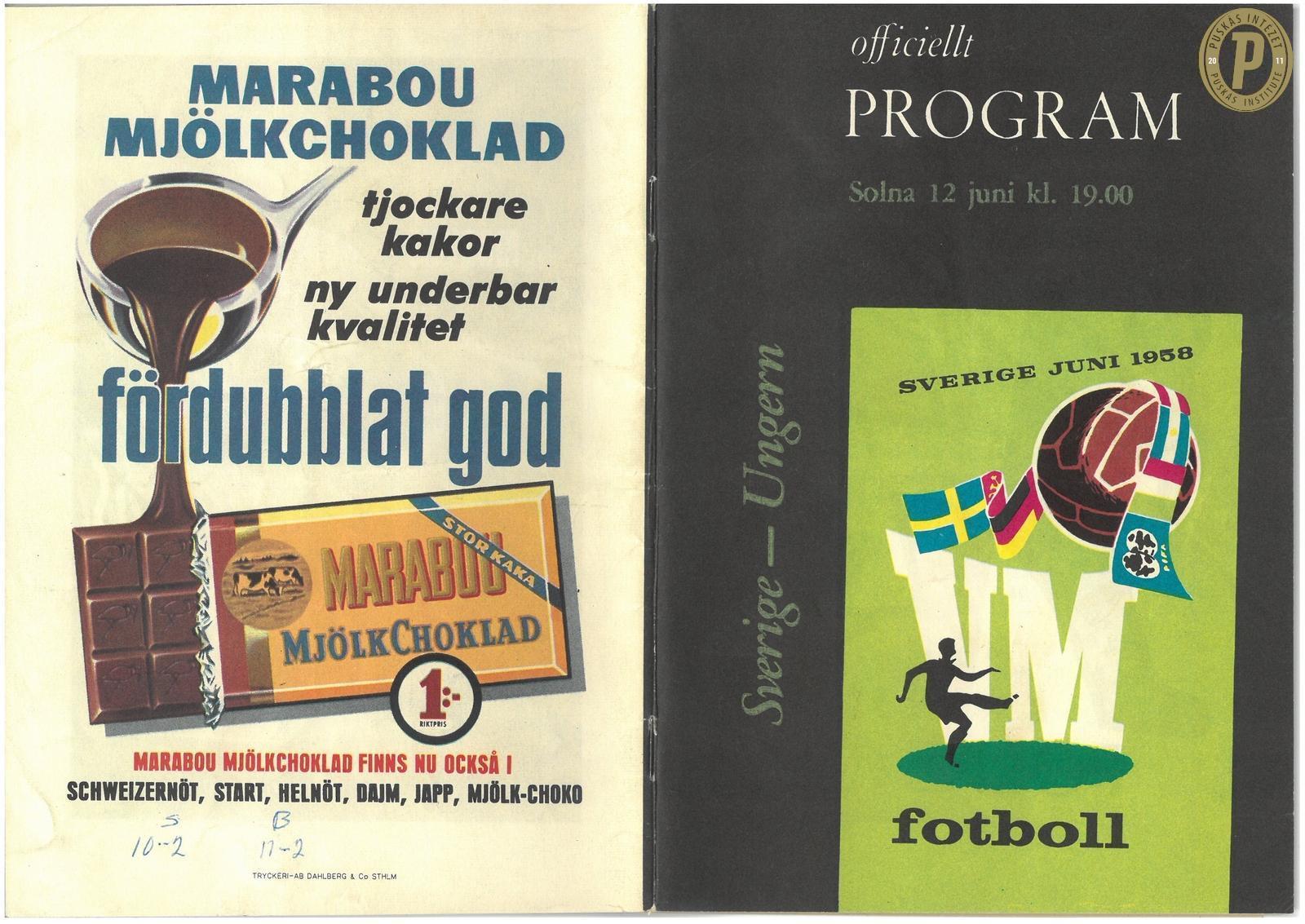 Az 1958-as világbajnokság programfüzete. (Fotó: Puskás Intézet)