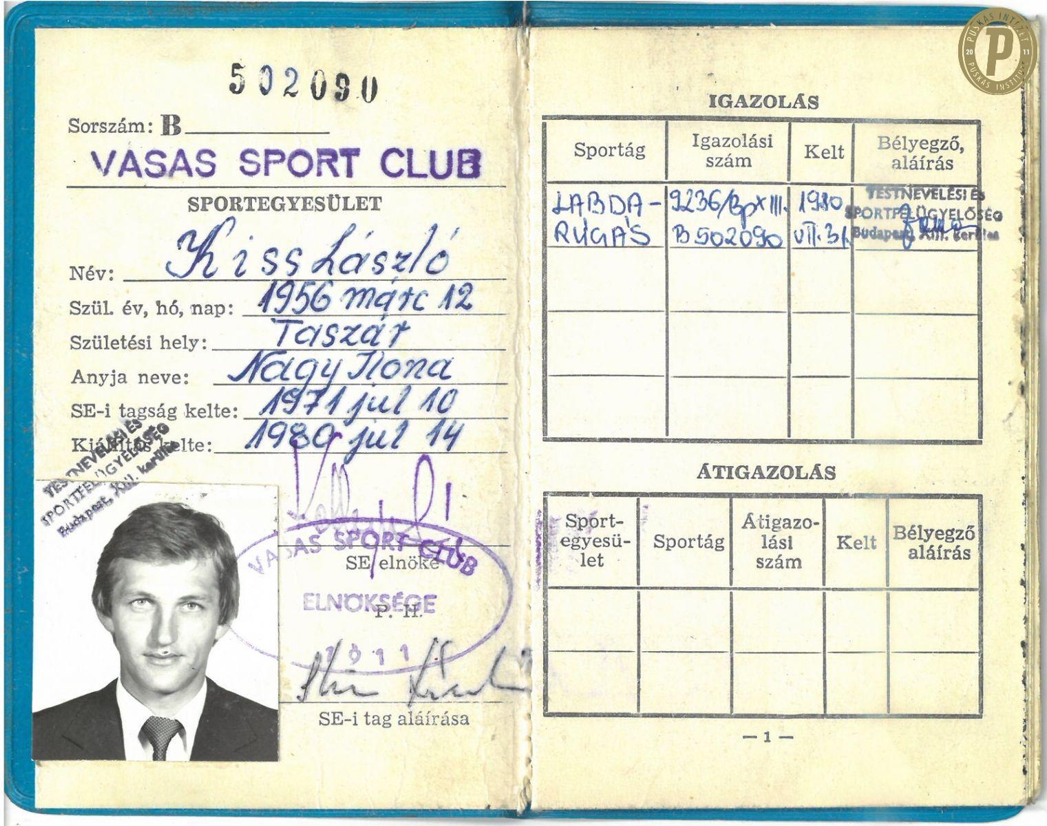 Kiss László fényképes Vasas SC tagsági igazolványa. (Fotó: Puskás Intézet)
