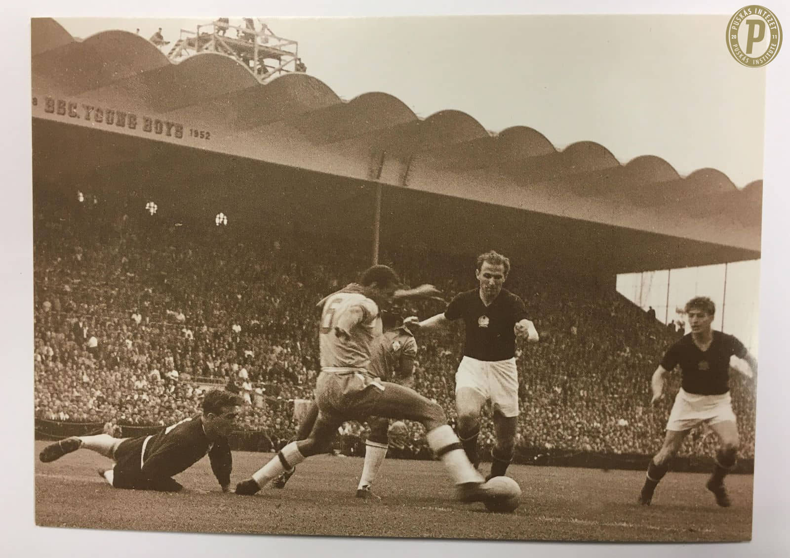Az „Öreg” a válogatott mezében küzd a pályán (Hidegkuti hagyaték/ Puskás Intézet)