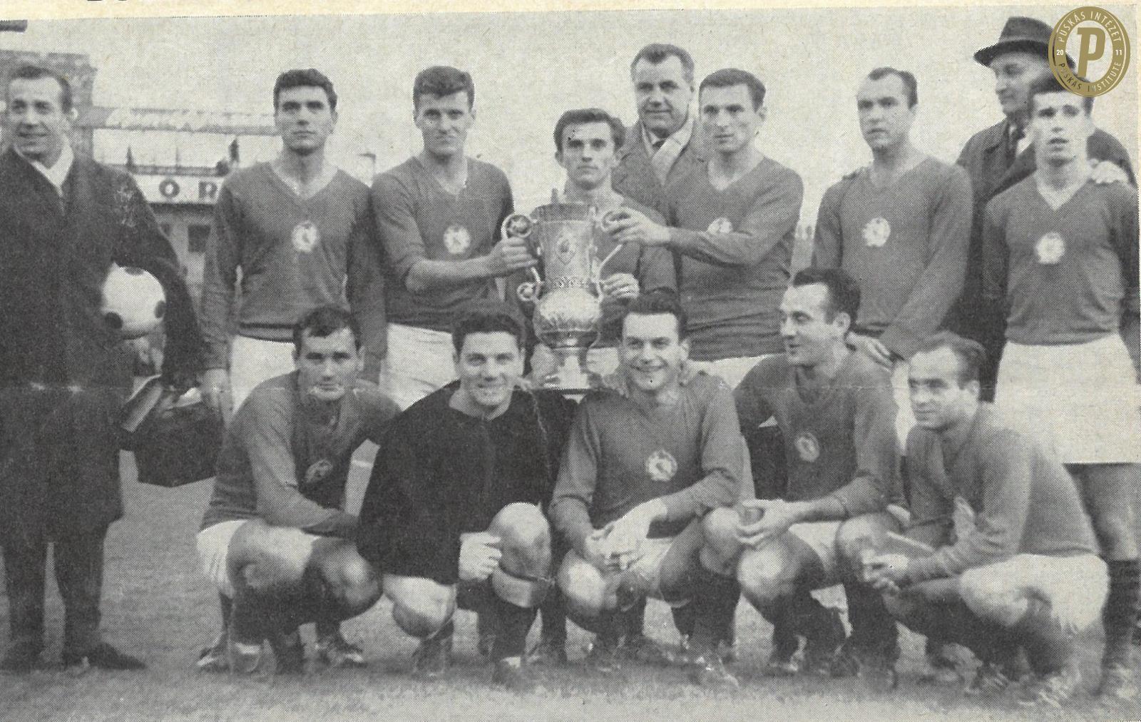A Bp. Honvéd 1964-es magyar kupa-győztes csapata Komora Imrével (alsó sorban jobbról a második) (fotó: Puskás Intézet)
