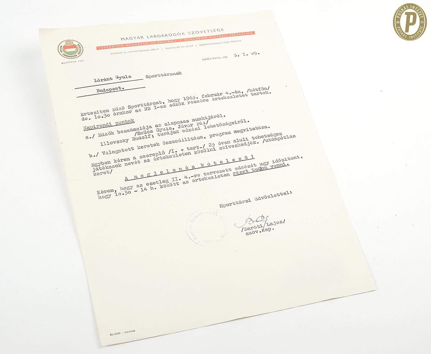 Lóránt Gyula Baróti Lajostól kapott levele. (Fotó: Puskás Intézet)