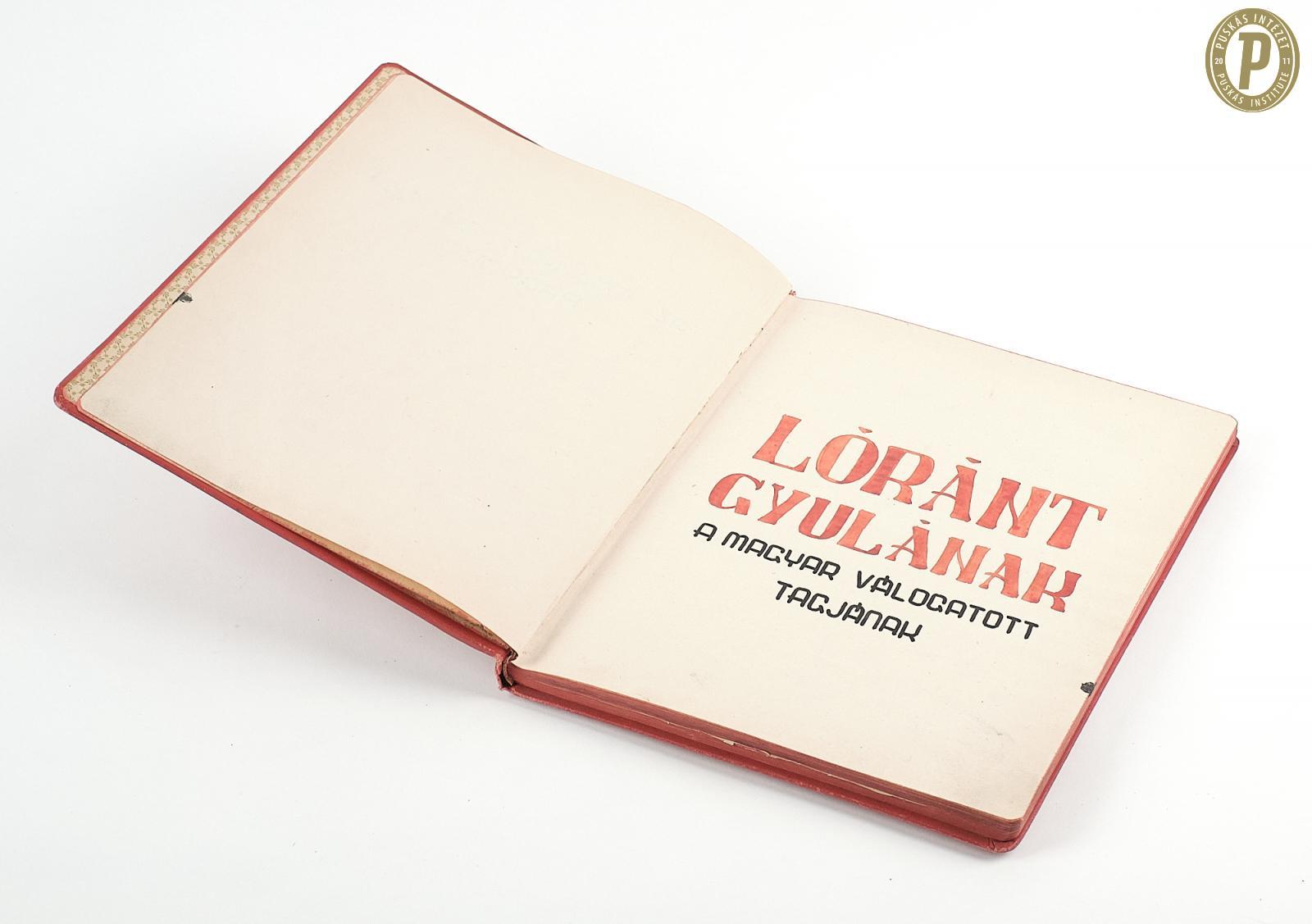Lóránt Gyula piros könyve, amelyet a szurkolóktól kapott az 1953-as angol–magyar után. (Fotó: Puskás Intézet)
