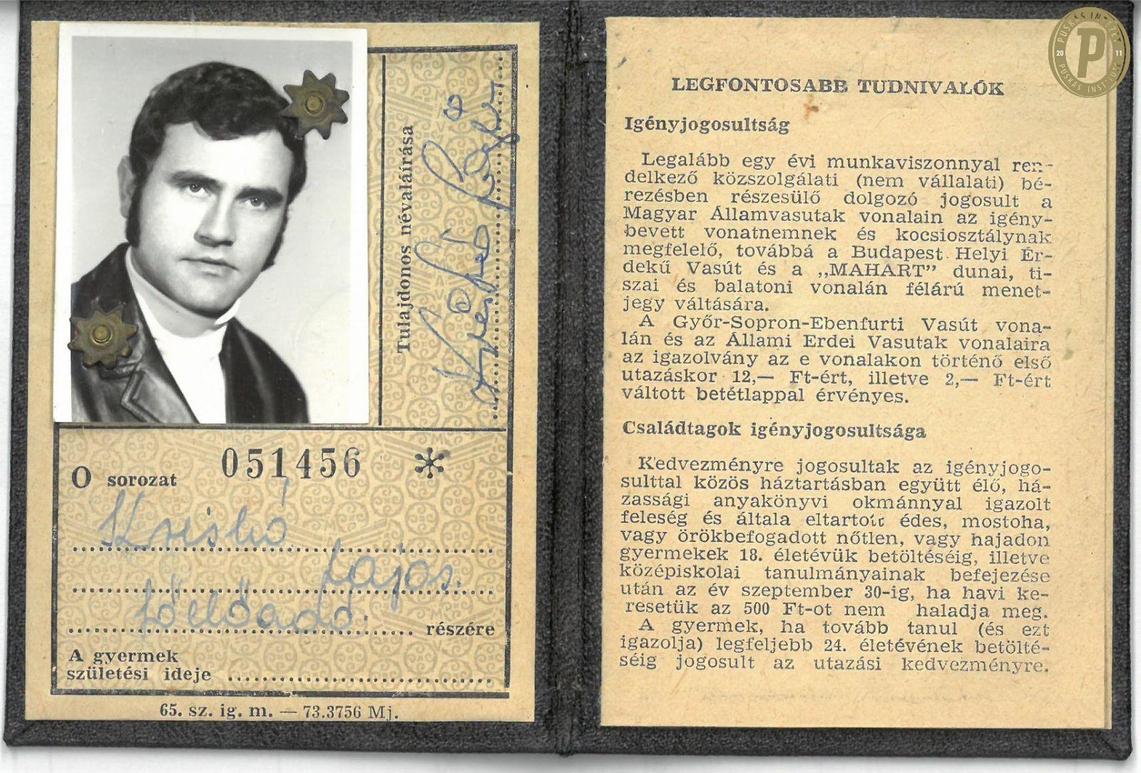 Kriskó Lajos utazási igazolványa. (Fotó: Puskás Intézet)