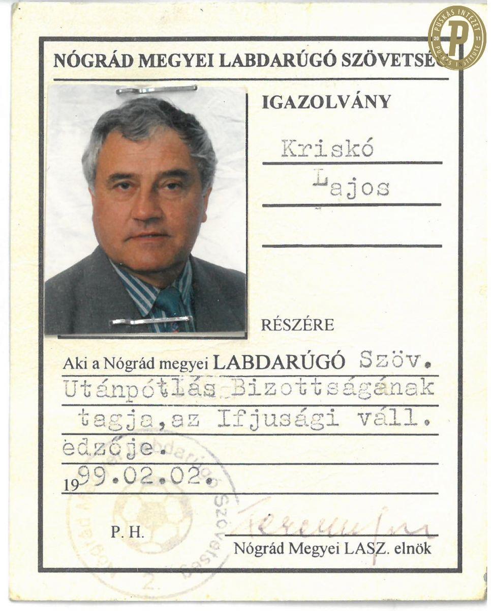 (Borítókép: Kriskó Lajos Salgótarjáni BTC-s igazolványa.)