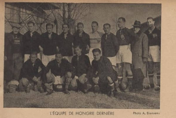 Csapatkép az 1938-as világbajnokság hivatalos programfüzetéből: a vb-ezüstérmes magyar válogatott tagjai Lázár Gyulával a soraiban (felső sor, balról a negyedik).