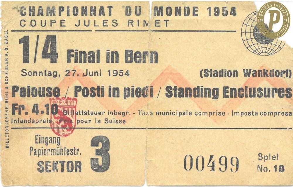 Belépőjegy az 1954. június 27-i Magyarország–Brazília vb-negyeddöntőre (fotó: Puskás Intézet/Lóránt)