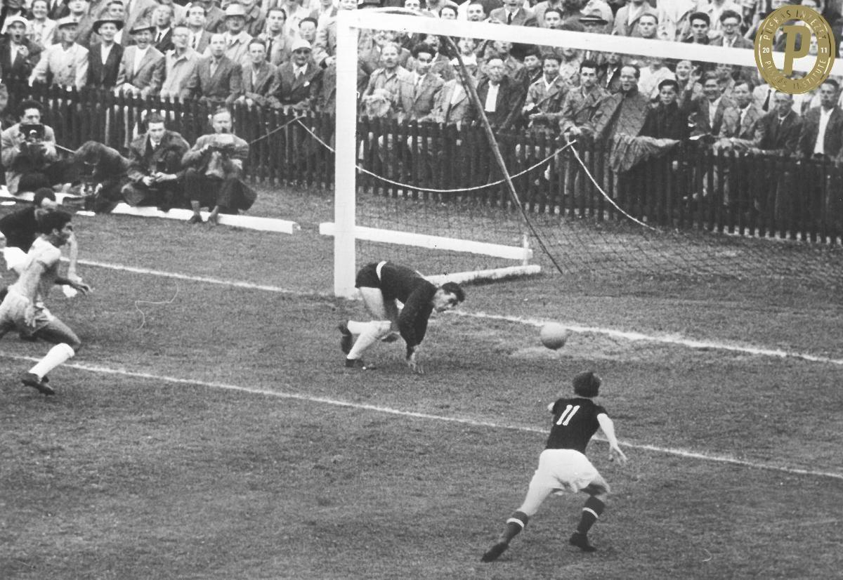 (Borítókép: Hidegkuti Nándor megszerzi az első magyar gólt Brazília ellen a vb-negyeddöntőben)