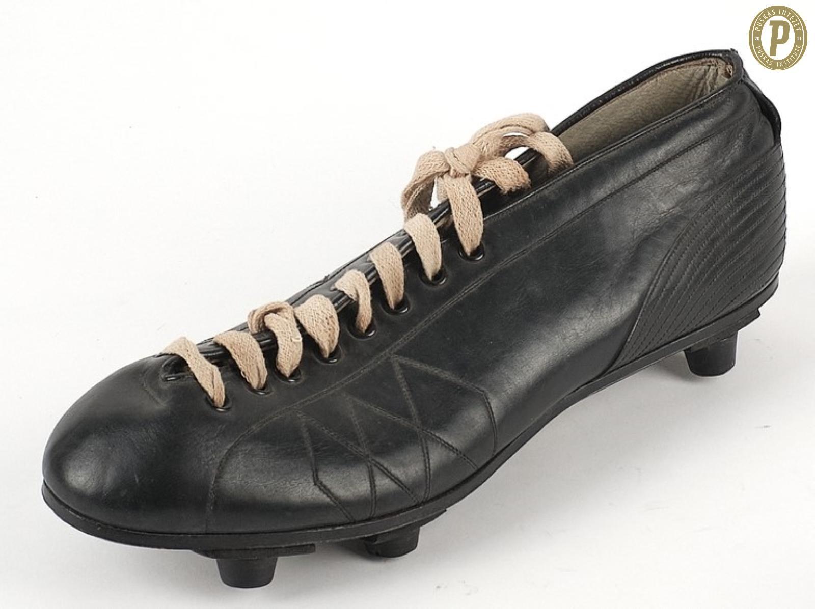 A „berni csatából”, vagyis az 1954. június 27-i Magyarország–Brazília vb-negyeddöntő utáni balhéból „zsákmányolt” futballcipő (fotó: Puskás Intézet/Puskás-hagyaték)