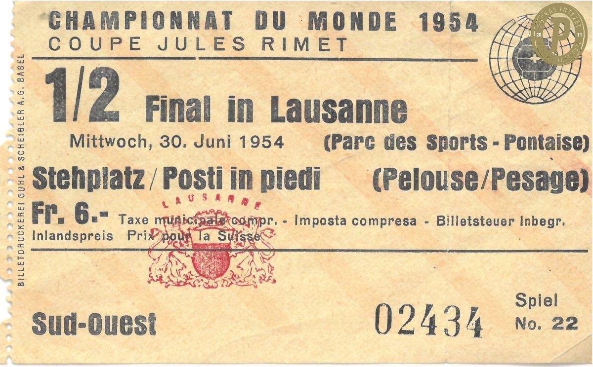 Belépőjegy az 1954. június 30-i Magyarország–Uruguay vb-elődöntőre (fotó: Puskás Intézet)