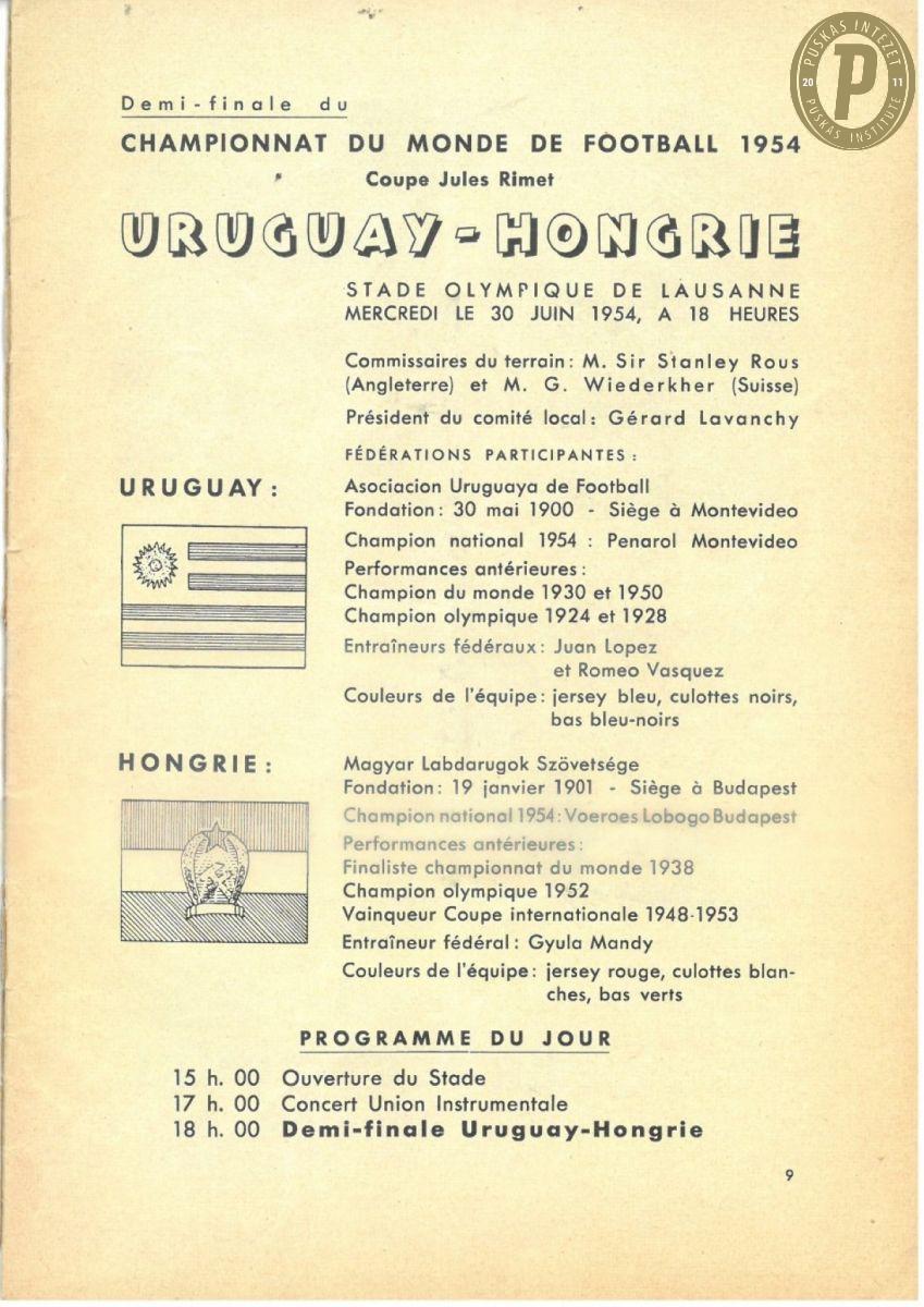 A csoportköri küzdelmek után Magyarország a negyeddöntőben Brazíliát búcsúztatva ment tovább a legjobb négy közé a svájci vb-n. 1954. június 30-án az elődöntőben nem akármelyik válogatott, a címvédő Uruguay próbálta a magyar csapat útját állni.
