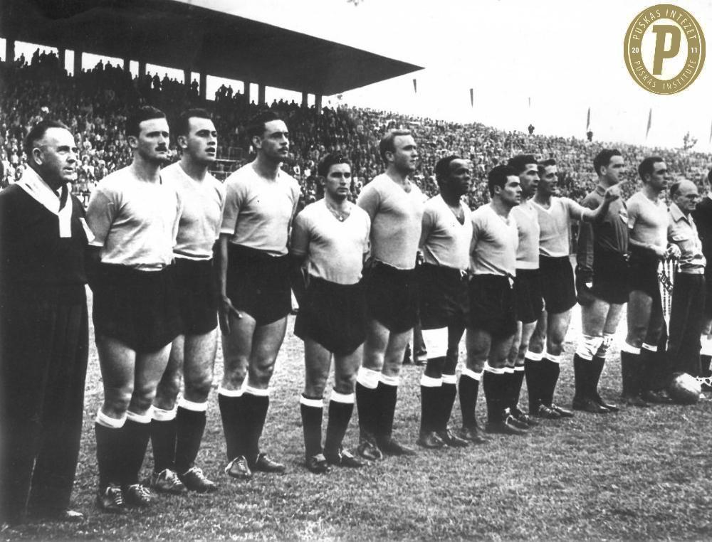 Az uruguayi kezdőcsapat az 1954. június 30-i Magyarország–Uruguay vb-elődöntőben (fotó: Puskás Intézet)