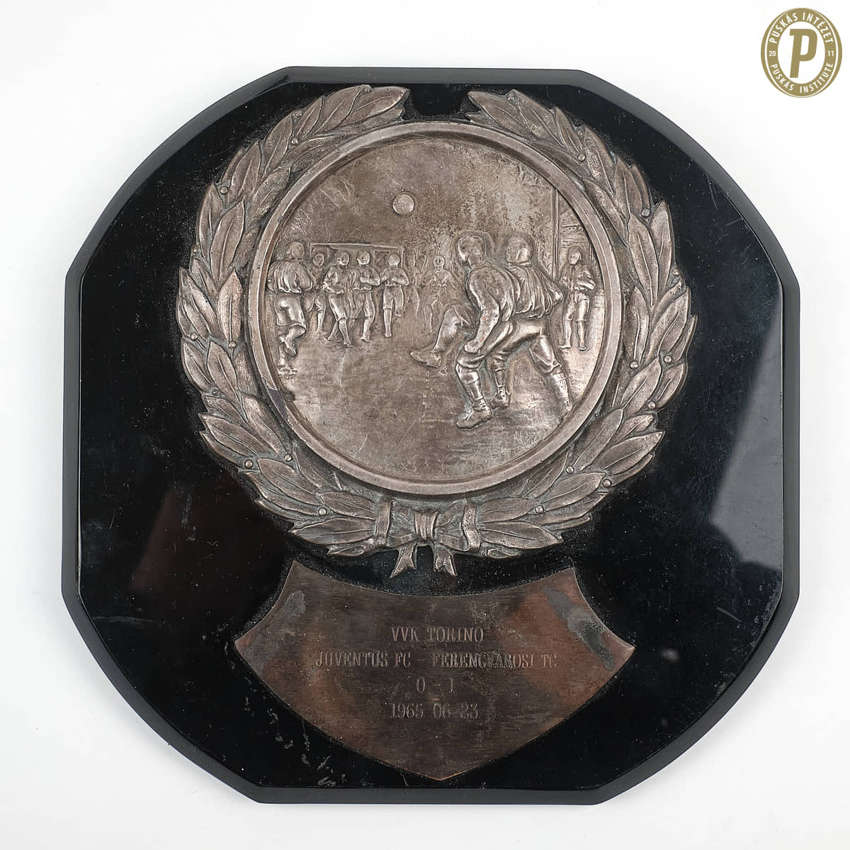 Emlékplakett az 1965-ös Juventus – FTC VVK-döntőről (Puskás Intézet)