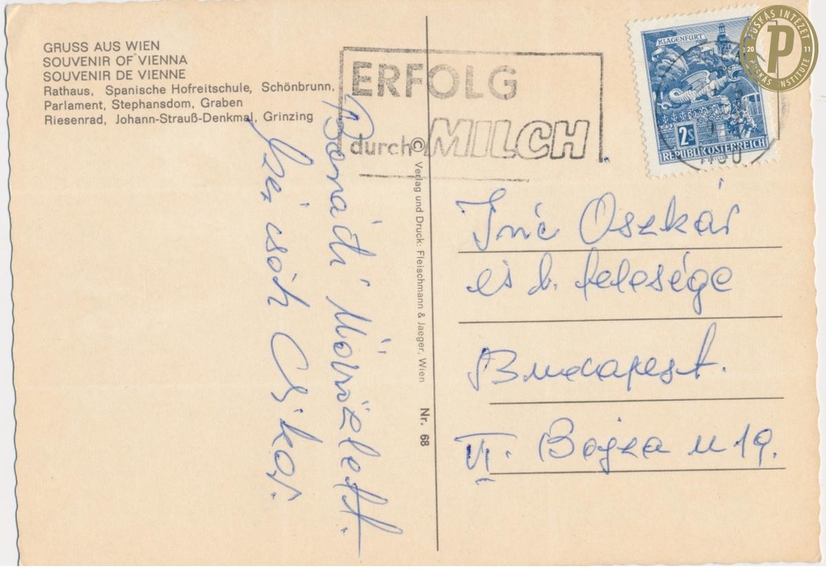 Sándor Károly Bécsből küldött képeslapja. (Fotó: Puskás Intézet)