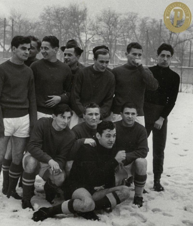 A Bp. Honvéd tagjai 1955. január 9-én a Bp. Vörös Lobogó ellen (fotó: Puskás Intézet/Puskás-hagyaték)